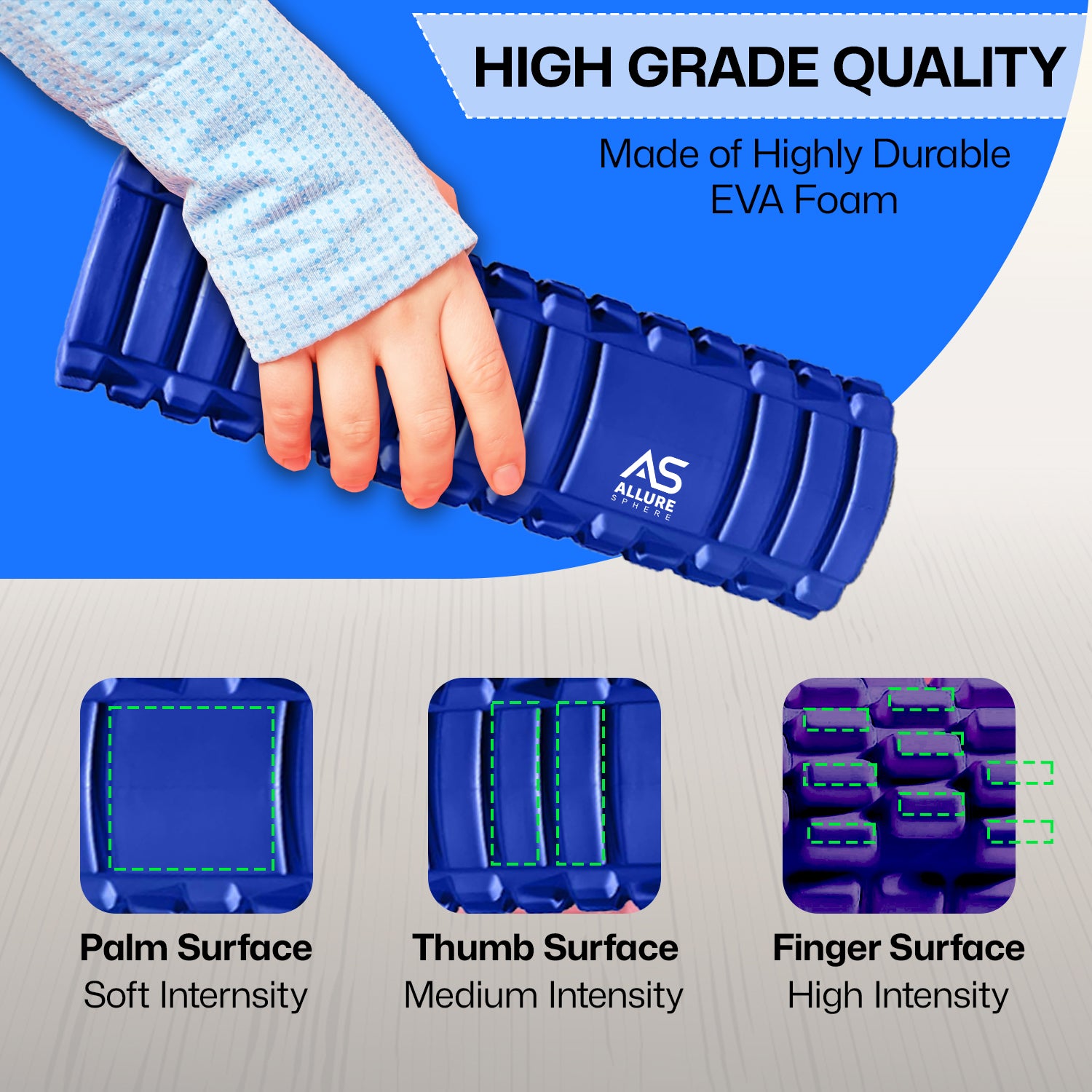 Our gym roller is crafted with high-density EVA foam, ensuring durability and longevity. The uniquely textured surface features multiple raised areas, allowing for a variety of massage techniques and angles to target different muscle groups.